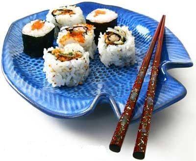 - ضعي شريحة السالمون أو التونة وفوقها الأرز ثم اضغطي عليها جيداً بالكيس واتركيها قليلاً ثم تقدم .