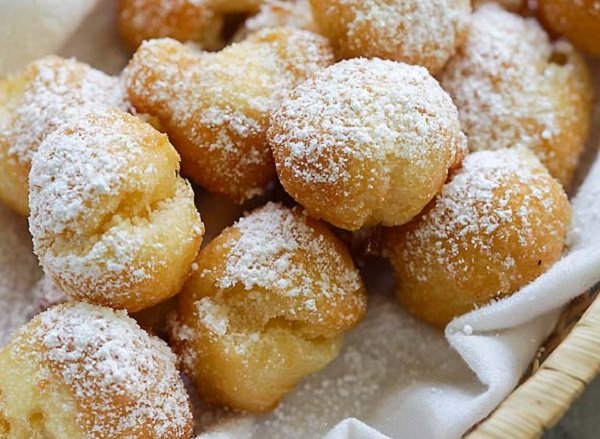 - املأي مقلاة بـ 5 – 7 سم بزيت القلي على نار هادئة – متوسطة، عندما يسخن الزيت، ضعي كرات العجين واقليهم على دفعات، قومي بتقليبهم حتى يحمروا بشكل متساوي وينتفخوا إلى أكثر حد، انقليهم وقومي بتصفيتهم على ورق الزبدة، رشي السكر الناعم بسخاء وقدميهم ساخنين.