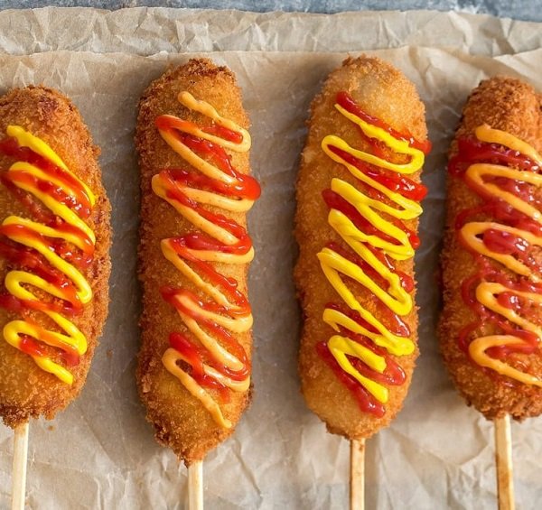 الكورن دوج من الأطعمة المشهورة في كوريا وغالباً ما تباع في الشوارع لأنها أكلة شهية وسهلة التحضير وبالتالي يمكنكم صنعها أينما كنتم فمكوناتها عبارة عن هوت دوغ وموزاريلا وعجينة مكونة من بيض وحليب وطحين وطبقة البقسماط المقرمشة التي لا تقاوم ويقدم مع الكاتشب والخردل .