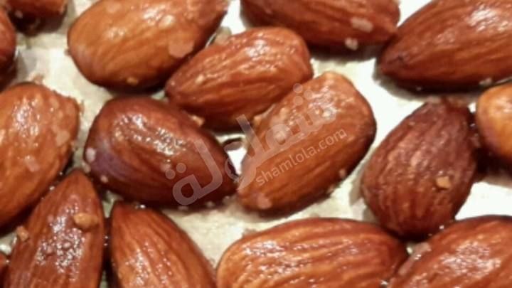 - ضعي مزيج اللوز على صينية و وزعيه عليها.