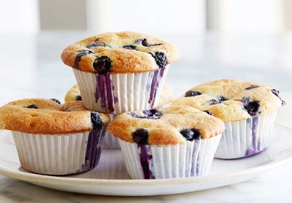 - بعد ذلك نضيف حبات التوت إلى المزيج ونحركهم بملعقة خشبية . نوزّع خليط الكيك بحيث نملأ فوهات صينية المافنز ونتركها في الفرن من 25 إلى 30 دقيقة حتى يصبح لون المافنز أقرب للذهبي .