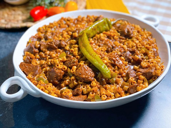 المبكبكة الليبية باللحمة أو المكرونة الجارية وصفة شهية من المطبخ الليبي عبارة عن معكرونة أي نوع مع قطع اللحم بالمرق الأحمر سهلة وسريعة التحضير .
