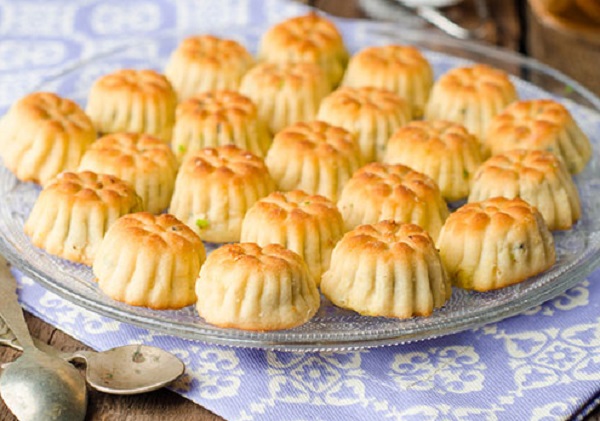 - نضع ورق زبدة على صينية الفرن ثم نأخذ قطعة من العجين ونضغطها ونضع فيها الحشوة ونغلقها بإحكام ونكورها ثم نرش دقيق على القالب ونضع فيه الكرة ونضغطها بالقالب حتى تأخذ شكله ونضع القرص على ورق الزبدة .
