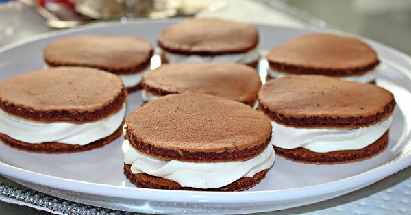 - نستمر بنفس الطريقة حتى يتشكل قطعتين محشوة بالكريمة .
