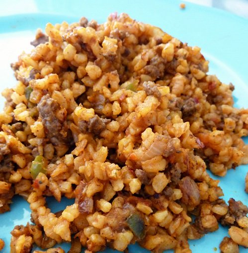 برغل باللحم طبق مشهور في بلاد الشام لان البرغل احد اهم المواد التي تتوفر في مطابخ تلك البلاد الغنية بحقول القمح ، و يصبح للبرغل نكهة رائعة عندما يضاف له اللحم الطازج ويقدم مع مرقة اللحمة ، قدمي بجانب برغل باللحم سلطة الزبادي بالخيار أو حساء ساخن أوسلطة.