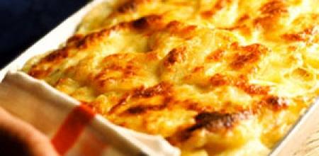 1_ يسخن الفرن و تدهن الصينية بسمنة تسلق البطاطا نصف سلقة ثم تقشر و تقطع شرائح و ترص في الصينية