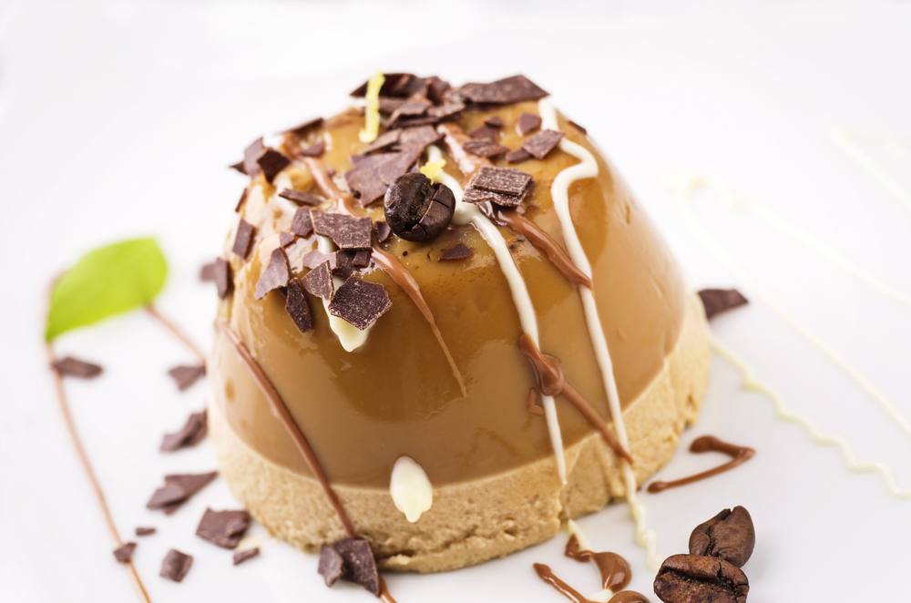 - تنقع أوراق الجيلاتين في ماء بارد وتوضع الشوكولاتة مع القهوة في طبق حراري ويوضع على إناء به ماء يغلي بلطف على نار متوسطة وتقلب حتى تذوب ثم توضع جانباً وتبرد قليلاً ثم يضاف صفار البيض ويخفق.