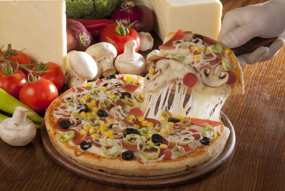 - تدخل الفرن لمدة 30 دقيقة، ثم تخرج من الفرن، ويرش عليها الجبنة الموزاريلا والجبنة الشيدر.