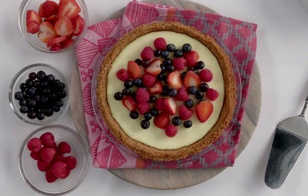 - اسكبي الخليط فوق القشرة الممددة في صينية، واخبزيهم لمدة 40 دقيقة، أو حتى يستقر المنتصف، برديه وجمديه في الثلاجة لمدة 3 ساعات.
