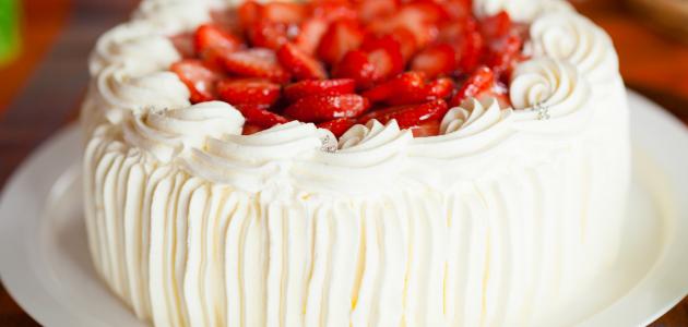 - نزيّن الكيك بالكريمة وقطع الفرولة.