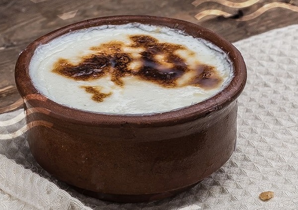 - وندهن صينية بالسمن ونضع الخليط وفوقه القرفة الناعمة والسكر.