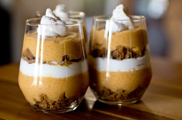 - نوزع طبقة من المزيج الكريمي على الكاسات ثم نضع طبقة من البسكويت ثم طبقة أخرى من الكريمة وننتهي بطبقة من البسكويت وبذلك يكون الحلى جاهزاً .