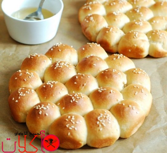 8- ندهن خلية النحل بالبيض ونرش سطحها بالسمسم وندخلها الفرن على درجة حرارة متوسطة الى ان يصبح لونهم ذهبي براق