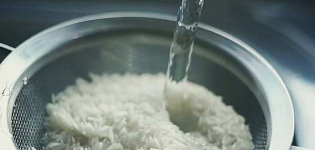 - نغسل الأرز جيداً ويُنقع لِمدة عشر دقائق، ثمّ يُصفّى من الماء.