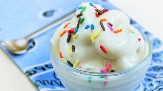 1.  يمزج الزبادي بالسكر والفانيليا جيدا حتى يذوب السكر.