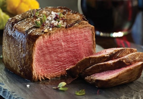 ستيك اللحم المشوي بالفرن ، شريحة كبيرة من لحم البقر المدهونة بالزبدة والمحمصة بالفرن حسب الرغبة، مع الملح والفلفل الأسود فقط، تقطع لشرائح ثخينة وتقدم مع الأرز، البطاطا او سلطة الخضار