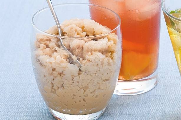 - ويغطي ويجمد في الفريزر لمدة 2 ساعة وبإستخدام شوكة يكحت لتفريق بلورات الثلج .