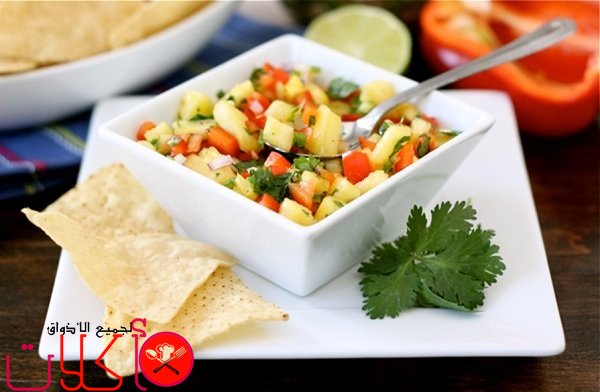 - نجمع في وعاء مناسب الأناناس، والفليفلة والكزبرة، والبصل والثوم وعصير الليمون، ونقلب جيداً