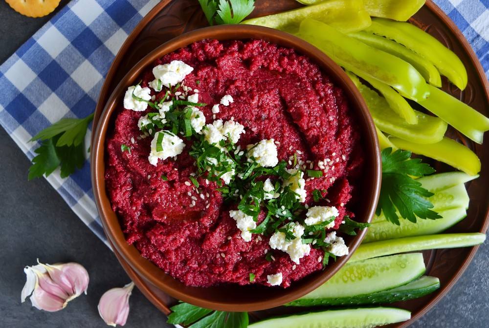 - يوضع البنجر في الكبة، ويضاف إليه الحمص وعصير الليمون وزيت الزيتون، ويضرب جيداً.