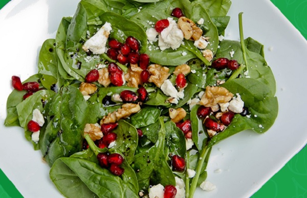 - نضع السلطة في طبق التقديم ونزين بالرمان وبذلك تكون سلطة الجرجير بالرمان جاهزة للتقديم .