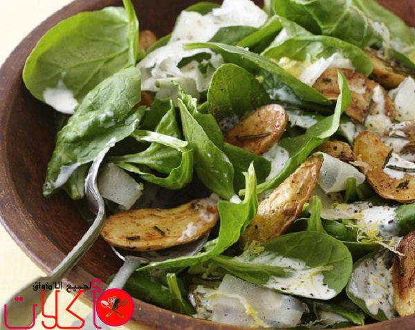 سلطة السبانخ بالليمون ، سلطة خضار صيفية، رائعة غنية بالكثير من المكونات الغذائية الصحية من البطاطا إلى السبانخ، الثوم، إكليل الجبل، المايونيز، زيت الزيتون وقشر وعصير الليمون.