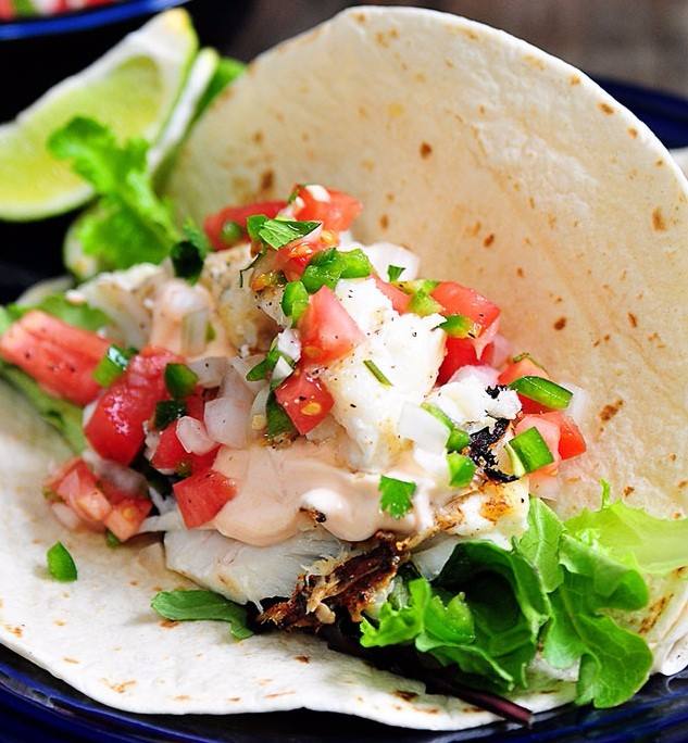 - قدمي سلطة السمك مع شرائح التورتيلا و الصوص.
