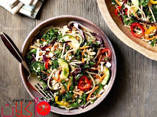 سلطة النودلز الاسيوية ، تتميز السلطة الآسيوية عن غيرها بأنها تحتوي على براعم الفاصولياء التي تستخدم كثيراً في المطبخ الآسيوي بالإضافة للنودلز والخضار المفيدة ذات الألوان المختلفة والرائعة والصلصة الخاصة الآسيوية .