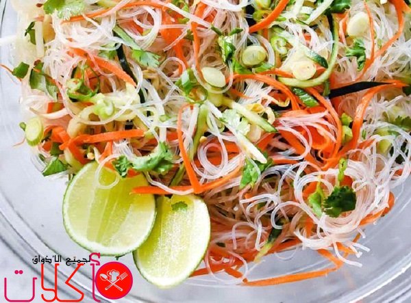 سلطة النودلز المقرمشة الخفيفة والآسيوية والمناسبة للريجيم مكونة من الخيار والجزر وبراعم الفاصولياء ويمكن إضافة اللحم أو الدجاج المشوي لهذا الطبق الجانبي وبذلك يصبح وجبة رئيسية مغذية على الغداء .
