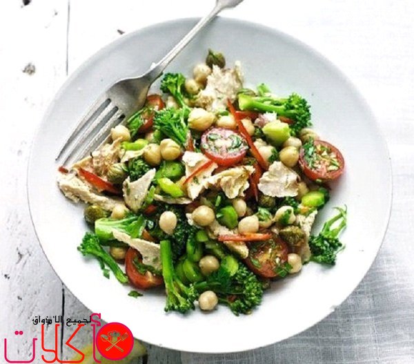 سلطة تونة دايت بالبروكلي ، هذه السلطة مغذية وسهلة ومفيدة للريجيم فهي تحتوي على البروكلي والطماطم والحمص وهي غنية بالبروتين والألياف وقليلة الدهون .