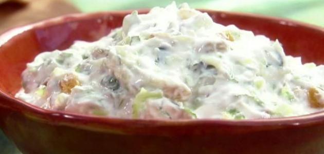 - سكب الخليط الناتج في وعاءٍ عميق، وإضافة اللبن الرائب إليه.
