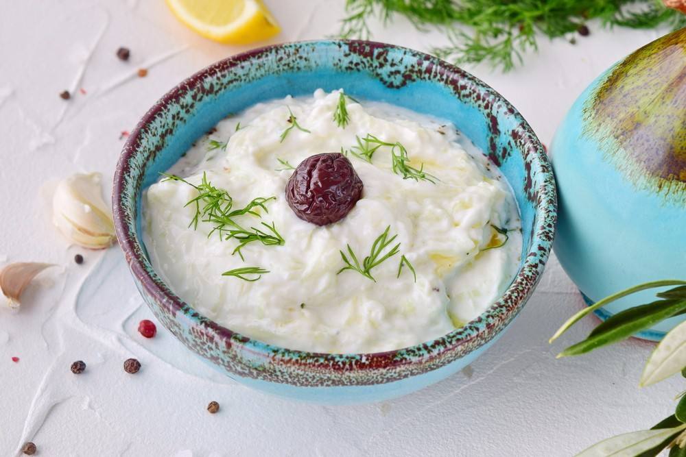 2. يوضع الزبادي في بولة، ويضاف إليه الشبت وعصير الليمون والثوم ويخلط جيدا.