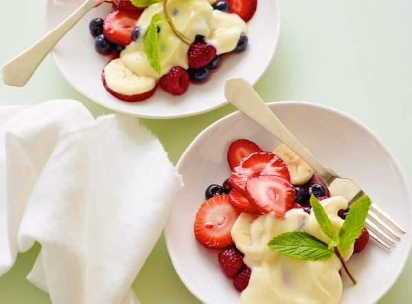 - اسكبي الخليط في أوعية، وقدميها مع لبن الزبادي على الوجه. وفوق كل منها اوراق مو النعناع الطازج.