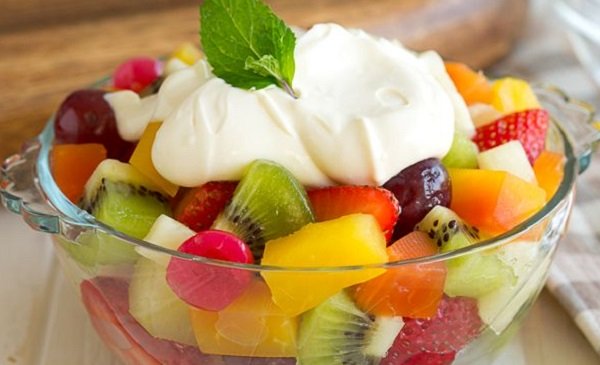 سلطة الفواكه الباردة لذيذة جداً في جميع الأوقات وخاصة في فصل الصيف الذي يأتينا بعدة أنواع شهية وملونة من الفواكه وهي من السلطات المغذية والمفيدة وبنفس الوقت مذاقها رائع وشكلها شهي للغاية وهي عبارة عن أي من أنواع الفواكه الموجودة لديك تخلط معاً ثم يوضع القليل من عصير الفريز مع القشطة والكريمة ونزين بالمكسرات والزبيب ونقدم السلطة .