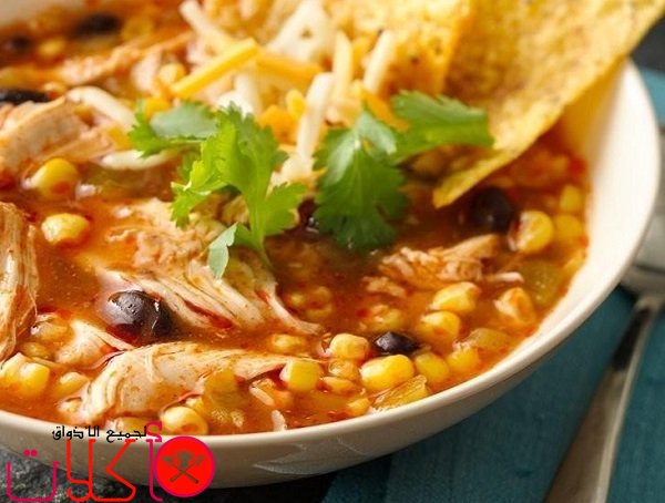 شوربة التاكو بالدجاج ، إذا كنتم من محبي الأطباق المكسيكية فشوربة التاكو خيار رائع فهو طبق تقليدي مكسيكي يحتوي على الذرة والخضار والجبن والدجاج وصلصة الطماطم وبهارات التاكو وهو شهي جداً .