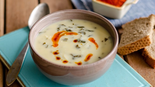 شوربة السبانخ باللبن الزبادي مغذية وشهية للغاية طريقة تحضيرها سهلة حيث يطهى السبانخ مع البصل ثم يضاف له الماء ثم صوص اللبن وتكون بذلك الشوربة جاهزة للتقديم .