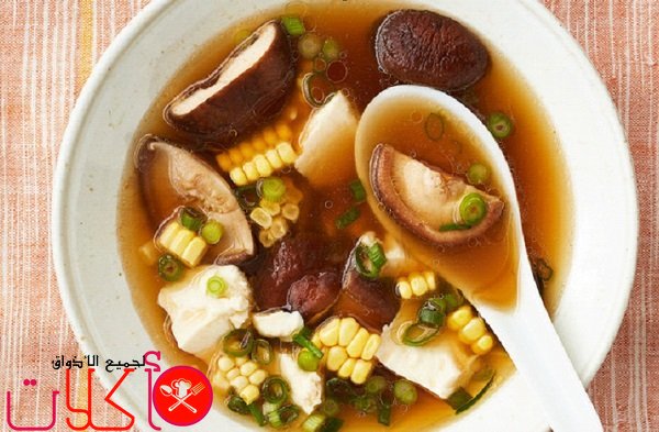 شوربة صينية بالخضار ، شوربة الذرة والفطر الصينية سهلة وغنية بالنكهات فهي تحتوي على جبن توفو ذي المذاق المميز بالإضافة إلى البصل الأخضر والزنجبيل وصلصة الصويا وصلصة سامبال الاندونيسية الحارة مع ذرة وفطر بمرق الدجاج أو الخضار .
