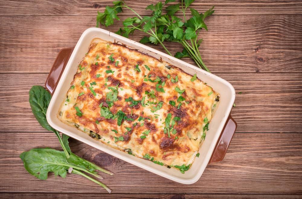 - ترفع من على النار، وتوضع في صينية أو بايركس، ويرش عليها الجبنة الموزاريلا.