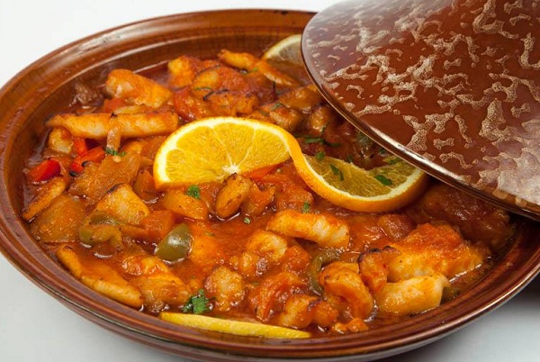 طاجن المأكولات البحرية من الأطباق المغذية والتي يمكن تحضيرها على الغداء أو العشاء فهي سهلة ولا يستغرق تحضيرها وقتاً فهي عبارة عن سمك فيليه وحبار وجمبري متبلة بصلصة من الزيت والثوم والكمون والليمون والبابريكا والكزبرة ومطبوخة بالطماطم المهروسة وصلصة السمك ثم يزين الطبق بالكزبرة .