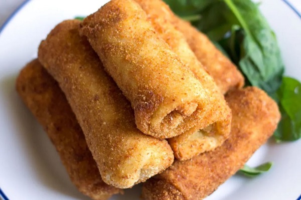 - وأخيرا نحمي الزيت ونقليهم حتى تصبح الرولات ذهبية ومقرمشة نصفيها من الزيت جيداً .