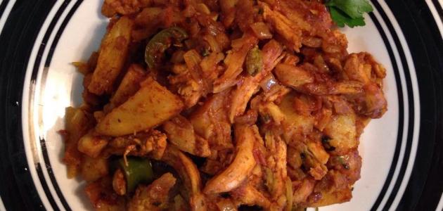 - نضع قطع الدّجاج على البصل والزّيت، ونستمرّ بالتّقليب مدّة عشر دقائق.