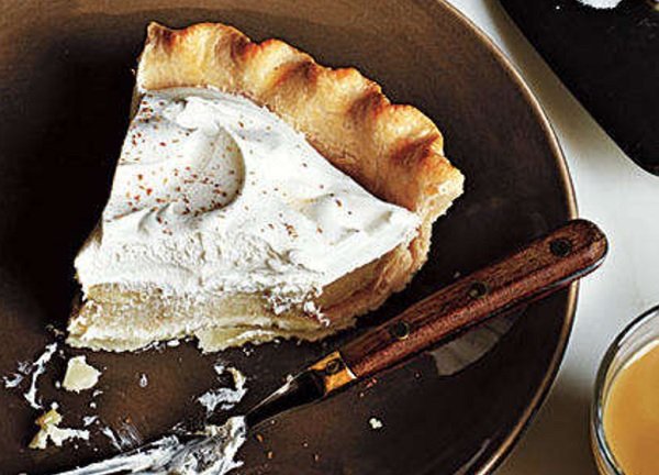 - ضعي الصينية في وعاء كبير مملوء بالثلج لـ 10 دقائق. او حتى تبرد الحشوة. مع التحريك من حين لآخر. اسكبي المزيج بالملعقة فوق القشرة، غطي الوجه بكيس بلاستيكي وجمديهم لـ 3 ساعات أو حتى تستقر. أبعدي الكيس. ضعي الكريمة على الوجه، زينيهم بالقرفة المطحونة.
