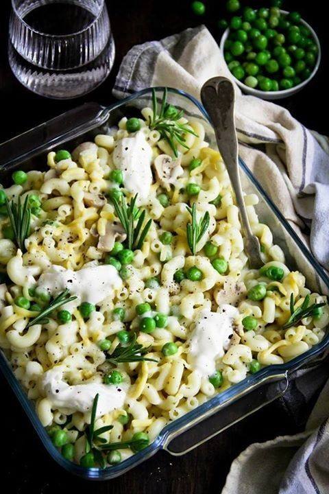 - في صينية فرن ضعي الباستا المسلوقة واسكبي فوقها الصلصة والخضروات .