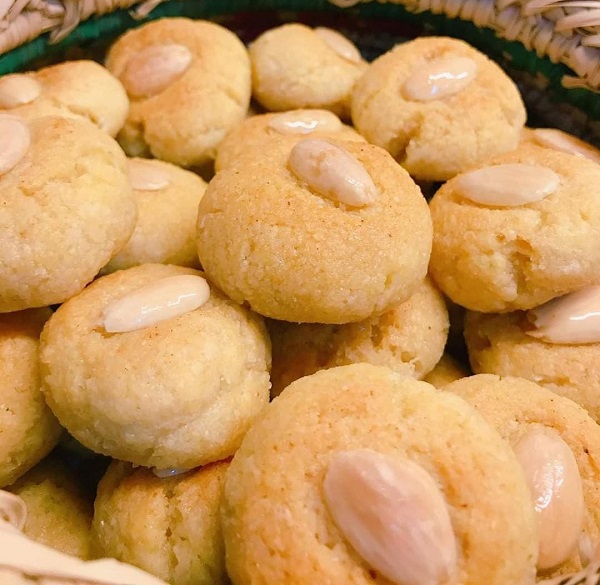 - بعد أن نخرجها من الفرن وهي حارة نسقيها بالقطر ثم نرتبها في طبق ونزين وجهها بالفستق الحلبي الناعم أو اللوز .
