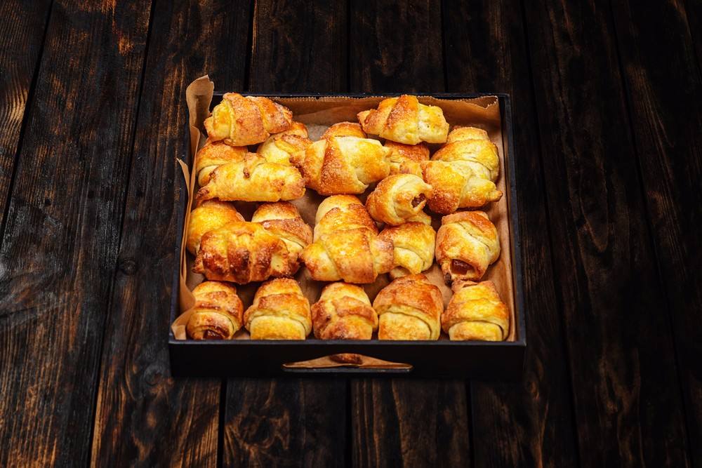 - يرص الكرواسون في الصينية، ويدهن بالبيض.