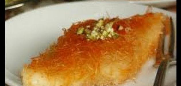 - نشرّب الكنافة بالقطر البارد ونقطّعها ونزيّنها بالفستق الحلبيّ ونقدّمها.