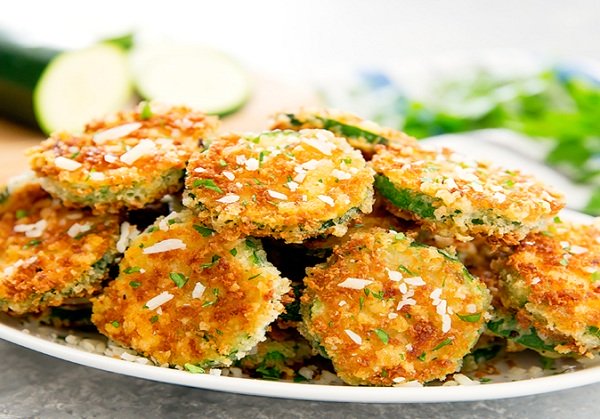 كوسة بالجبنة ، مقبلات سريعة بشرائح الكوسة مع تغليفة البارميزيان على سطحها، ويتم تحضيرها بشكل مقلي مع خليط البيض والطحين وفتات الخبز، ويتم تقديمها ساخنة مع أطباق الأرز بعد رش البقدونس المفروم عليها .