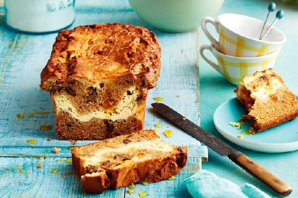 - اخبزي الرغيف لمدة ساعة، أو حتى تخرج الشوكة نظيفة بعد غرزها في المنتصف. اتركيه في الصينية لمدة 10 دقائق. انقليه الى شبك مفروش بورق الزبدة ليبرد، قدميه ساخناً أو بارداً بعد رشّه بالقليل من العسل عند الرغبة.