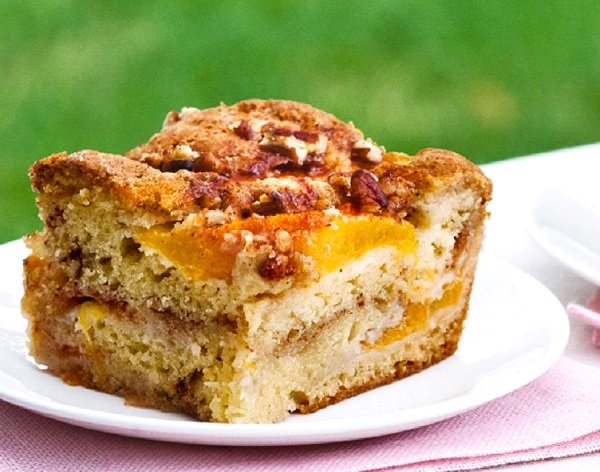 كيكة الدراق الباردة ، لا بد أن تتذوقوا الكيك بفاكهة الدراق الصيفية فالكيك رائع وشهي وخاصة مع قطع الجوز وبهار القرفة الذي يضيف نكهة مميزة للكيك .