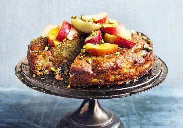 كيكة الفستق الهشه ، للتغيير عن كيك الشوكولا وكيك الكريما، يمكن تجربة هذه الوصفة الشهية لكيك الخوخ الطازج الذي نحب أكله في فصل الصيف وخاصة مع مذاق العسل الرائع والفستق الحلبي .