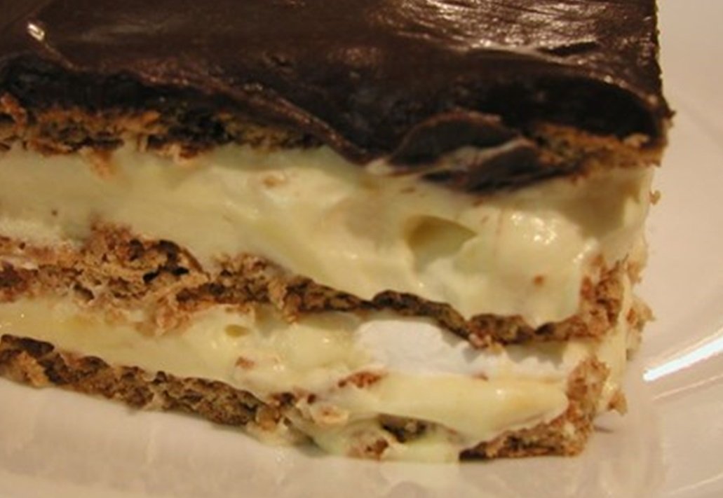 - ثم ضعي آخر طبقة من البسكويت ثم غطيها بطبقة شوكولا. ضعيها في الثلاجة مدة ساعتين قبل التقديم كي يكون البسكويت طريا.